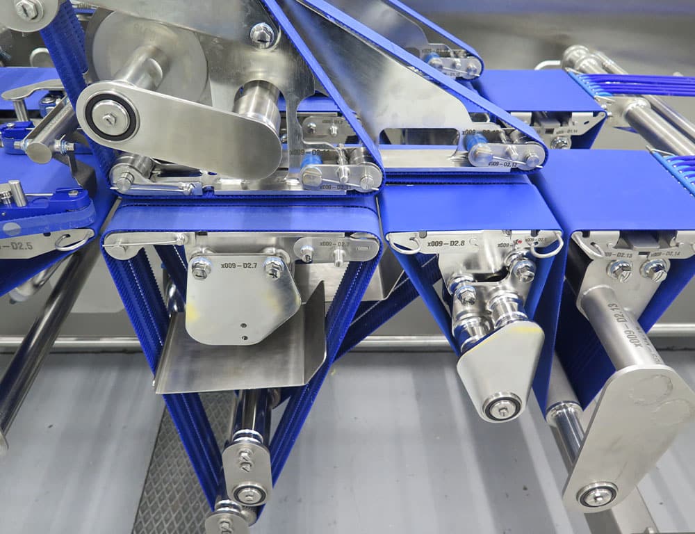 Elastische monolithische Bänder eignen sich besonders für den Transport von unverpackten Lebensmitteln. Zudem eröffnen die Materialbeschaffenheit und Verarbeitungsmöglichkeiten interessante Einsatzmöglichkeiten weit über den eigentlichen Sinn des Transportbandes hinaus. Durch Ihre Beschaffenheit wird die Hygiene der Anlage als auch die Hygiene im Prozess deutlich verbessert.