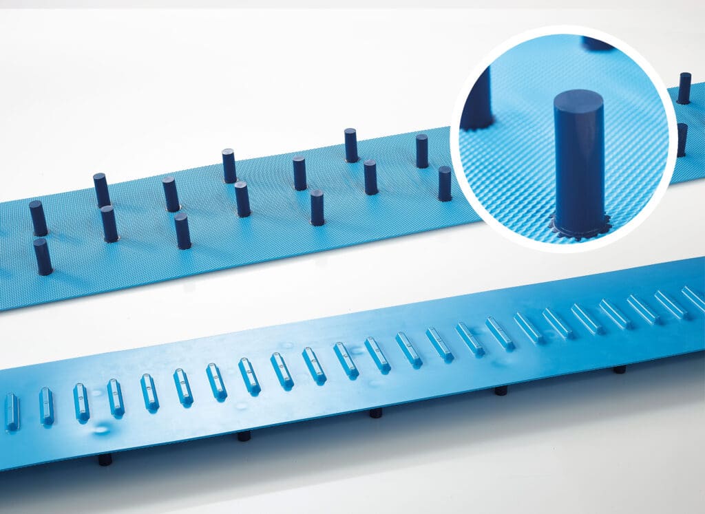 Unsere formschlüssigen Transportbänder ermöglichen einen schlupffreien Transport und erfüllen dennoch ein hohes Maß der Hygienestandards, die unsere Kunden wünschen. Zudem können wir aufgrund der Zusammenarbeit mit unseren Partnern für die verschiedensten Anwendungen und Trommeldurchmesser eine formschlüssige Alternative anbieten.